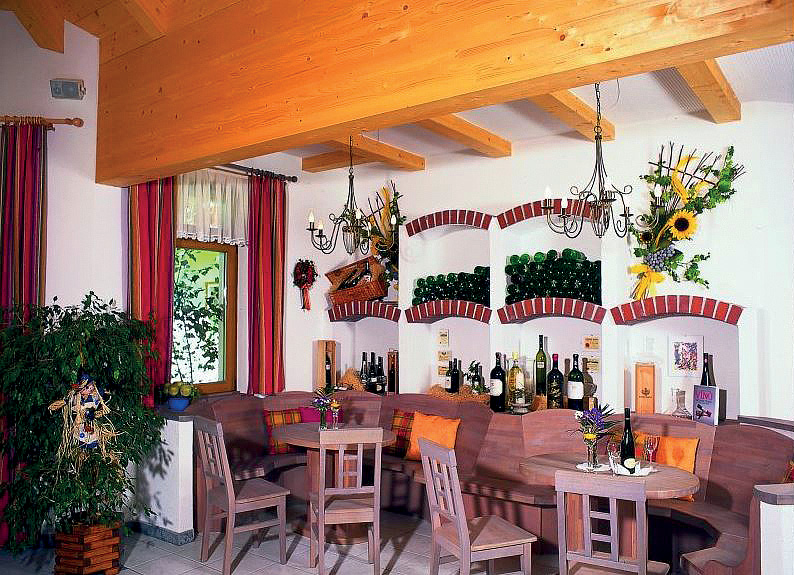 recepce, restaurace vyhrazená pro hotelové hosty, bar, vinný sklípek, wi-fi připojení k internetu ve většině společných prostor, dětská herna, sluneční terasa s posezením, úschovna lyží a lyžařských bot, výtah, vyhrazené parkoviště