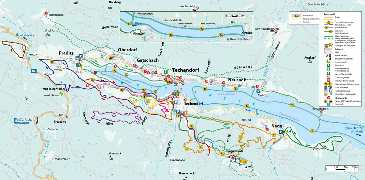 Techendorf, centrum - 2 km, skiareál Weissensee - 3 km, skiareál Nassfeld - 30 km, skibus - 10 m (Weissensee i Nassfeld)