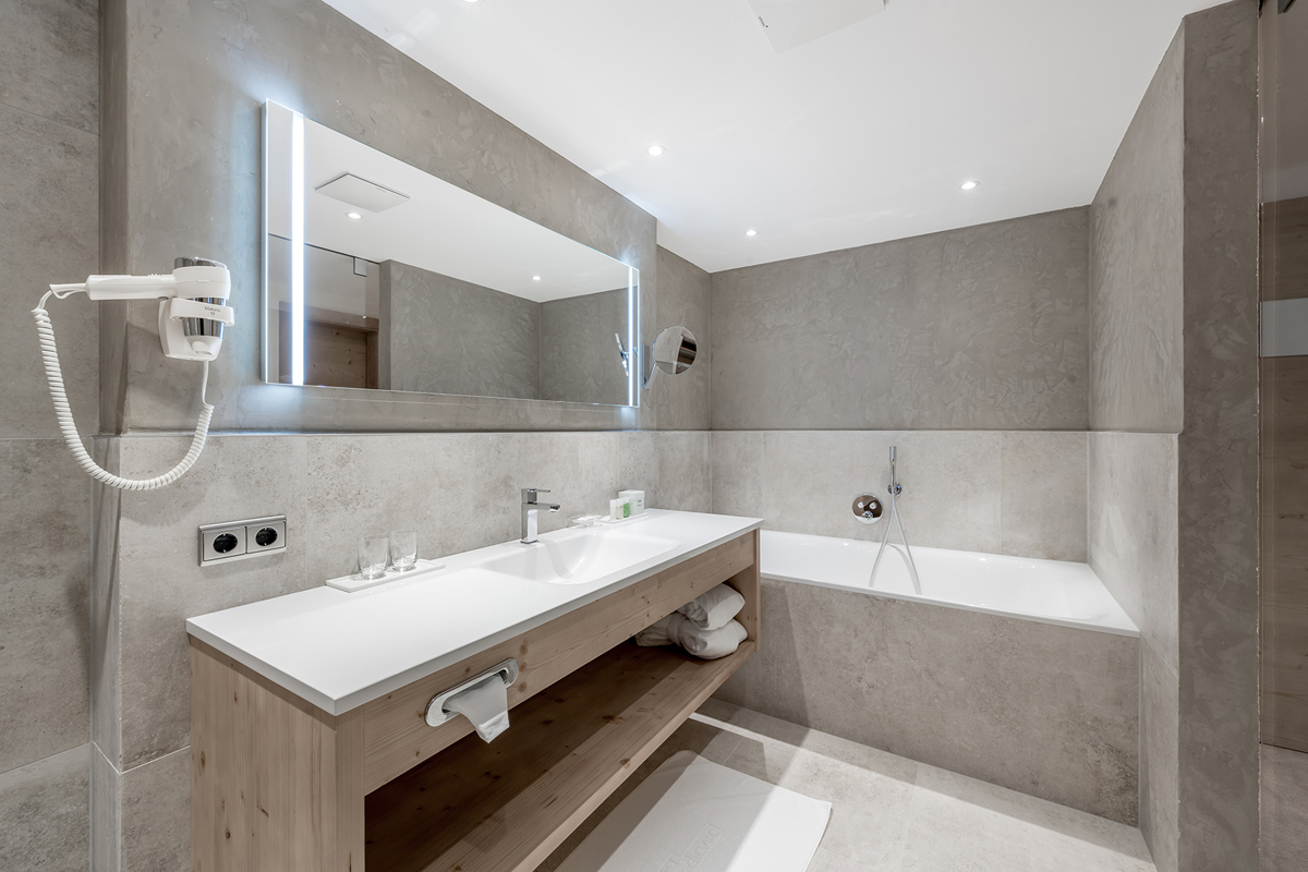 SPA Suite 6 sauna - 60 m² 2 ložnice s manželskou postelí, obývací pokoj s rozkládacím gaučem pro 2 osoby, sociální zařízení s vanou, sociální zařízení se sprchou, privátní sauna, balkon