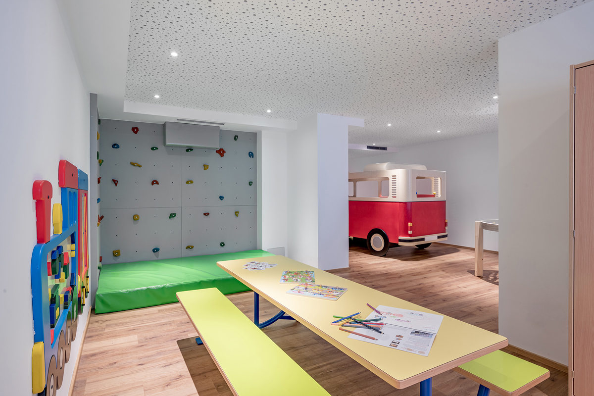 recepce / lobby, restaurace vyhrazená pro hotelové hosty, a la carte Gourmet restaurace*, bar, vinný sklípek, společenská místnost, dětský koutek, sluneční terasa s posezením, wi-fi připojení k internetu, úschovna lyží a lyžařských bot, výtah, vyhrazené parkoviště, garážová stání
