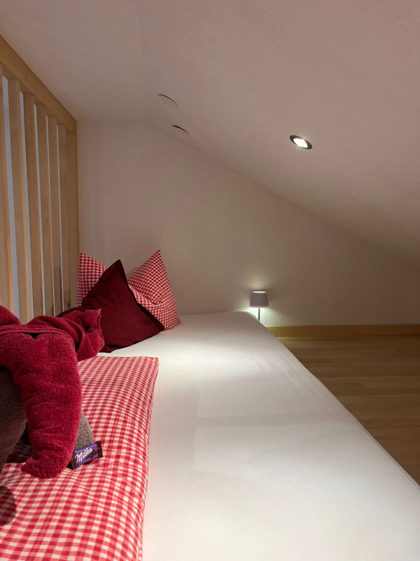 80 m² - 1 ložnice s manželskou postelí, ložnice s palandou a neuzavřeným patrem (přístup po posuvných schodech) se 2 přistýlkami pro 2 děti do nedovršených 13 let, samostatná kuchyň, 2x sociální zařízení; byt se nachází v podkroví domu