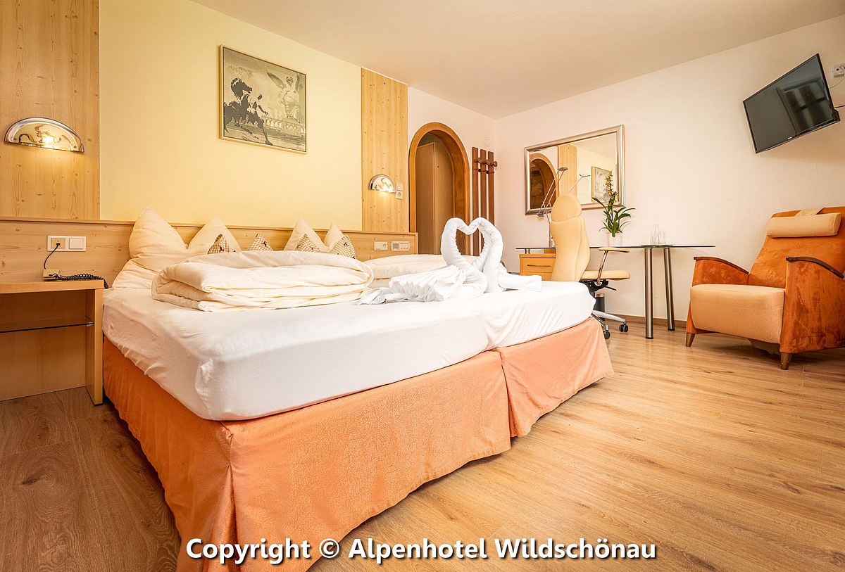 20 m² - pokoj s manželskou postelí a případně přistýlkou pro 1 dítě do nedovršených 15 let, sociální zařízení se sprchou či vanou, balkon; pokoje nejsou rekonstruované
