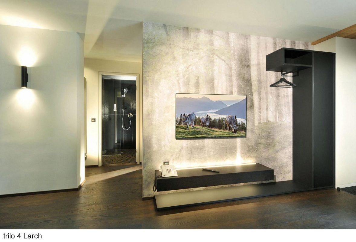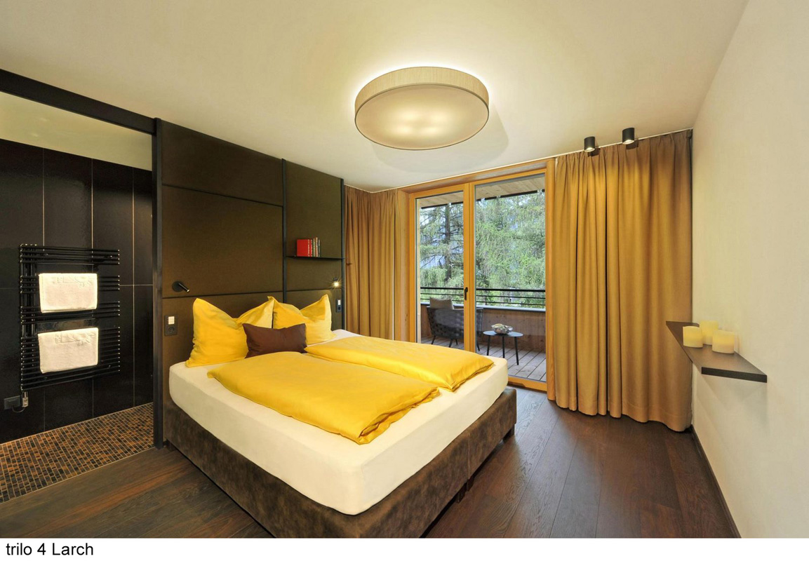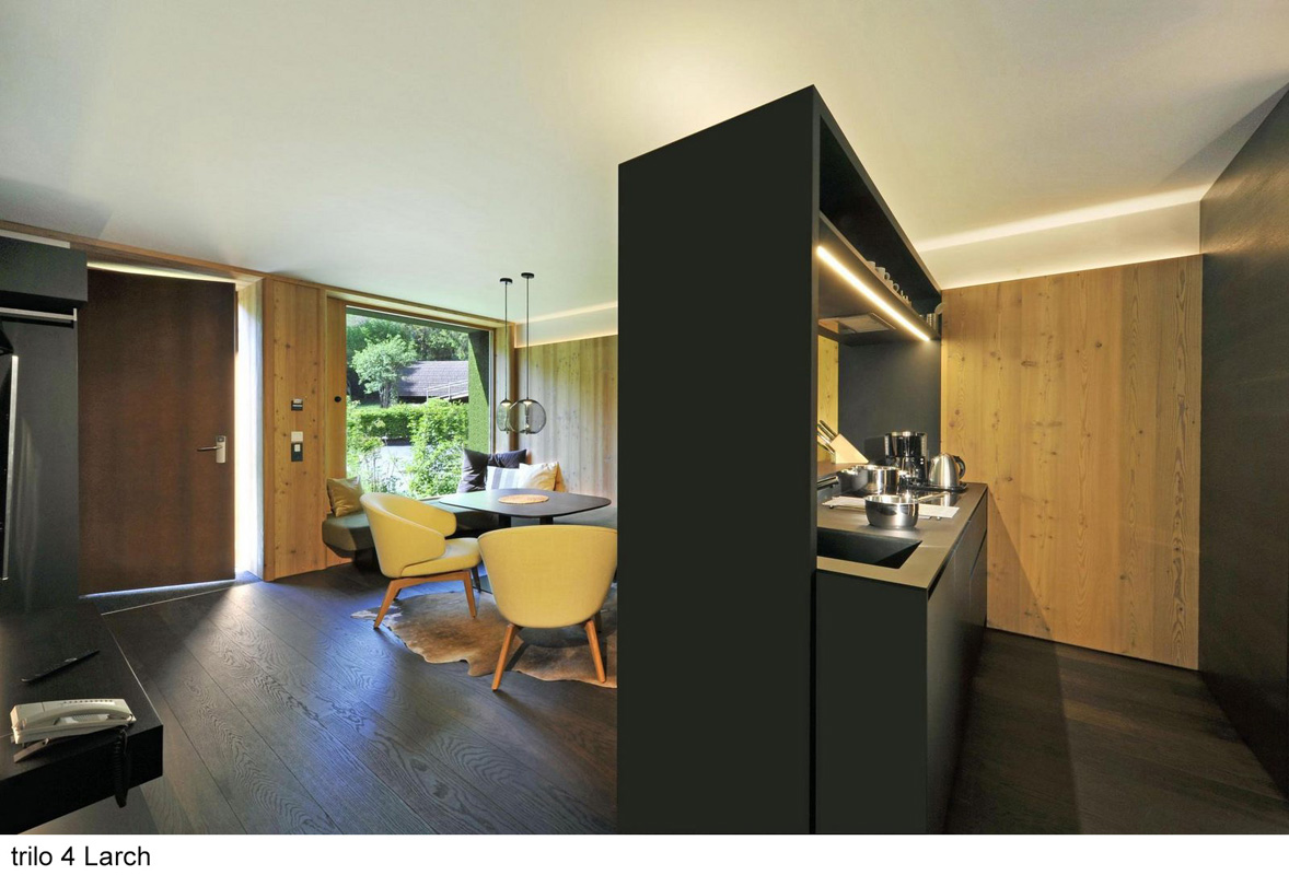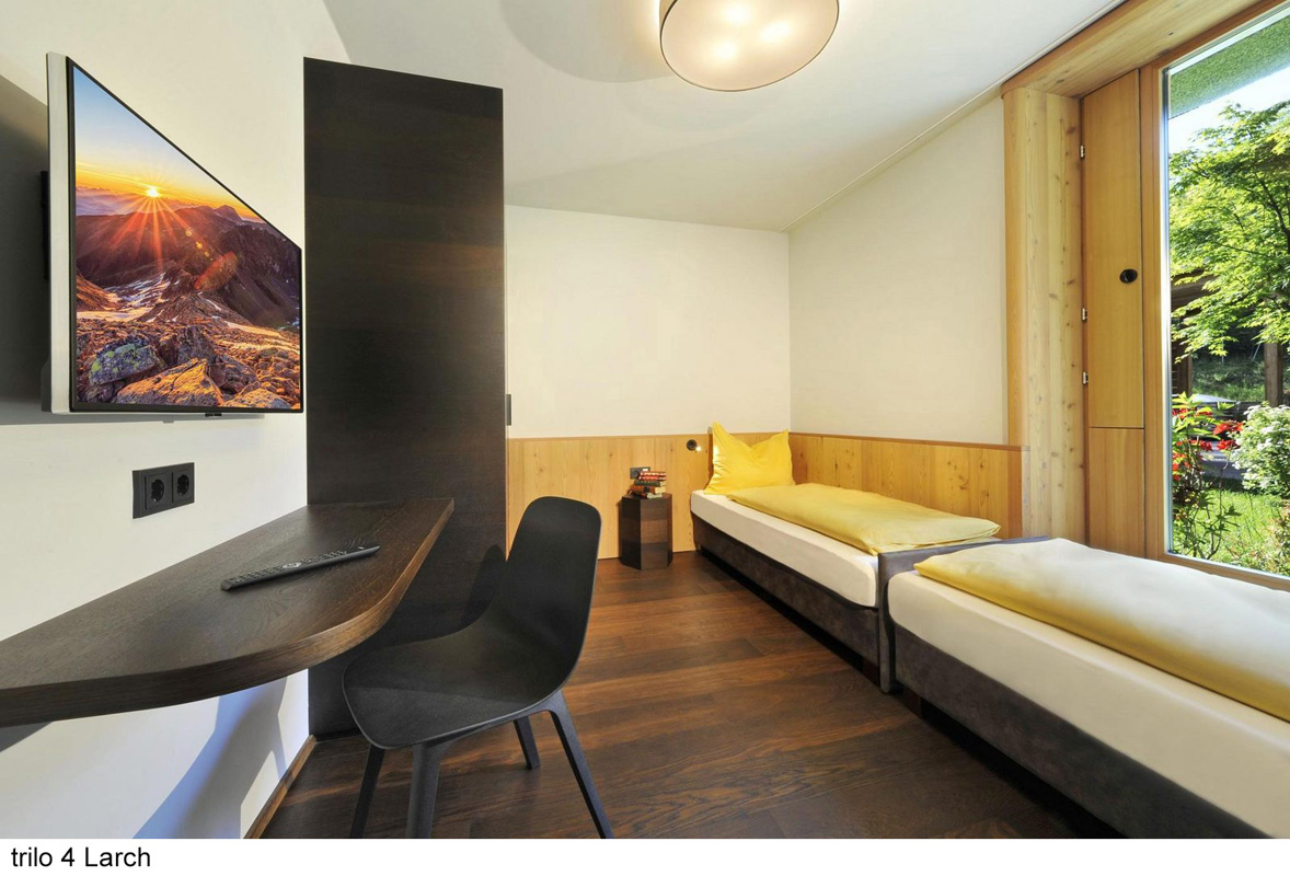zcela jedinečný ubytovací komplex skládající se z apartmánových budov s apartmány trilo Pine a Larch, mobilehomes resp. chalety Graz a Wien a volně stojícími dřevěnými domečky Tiny home, centrální budovy s recepcí, bistrem, terasou, konferenční místností, úschovnou lyží a dětskou hernou; uvedené vzdálenosti jsou měřeny od recepce