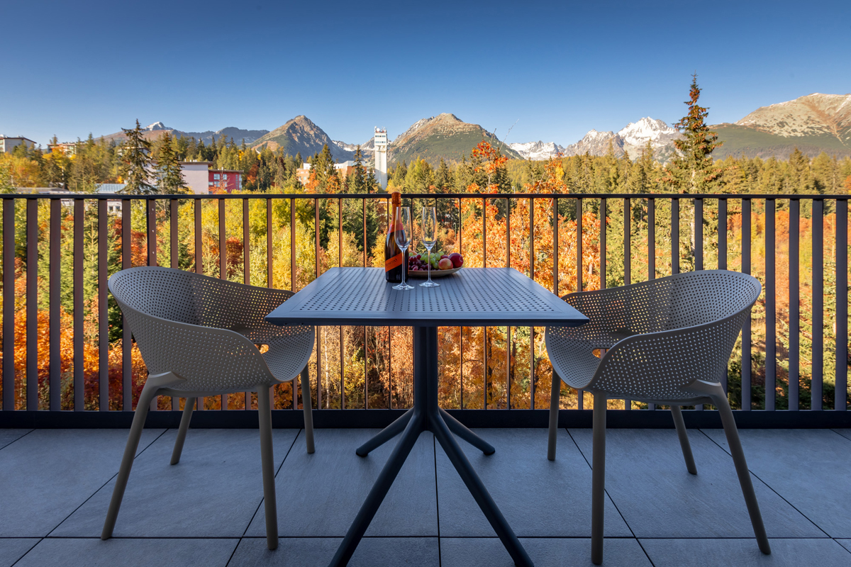 • vynikající poloha resortu, pouhé 2 minuty chůze od železniční stanice Štrbské pleso