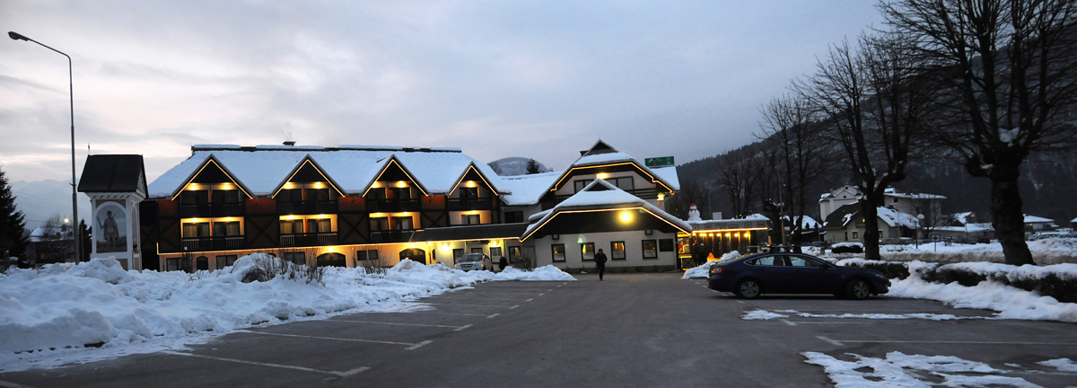 fakultativní nabídka aquaparku Bohinj* (200 m od hotelu): velký vnitřní bazén (31°C) nepravidelného tvaru s vodopády, divoká řeka, lezecká stěna nad bazénem, vířivka, dětský bazének (34,6°C), 2x tobogán, saunový svět