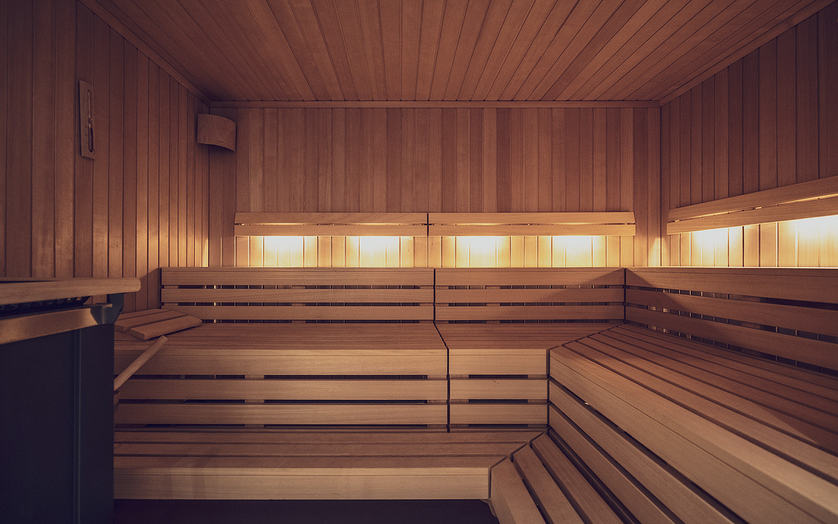sauna, relaxační koutek s lehátky; posilovna